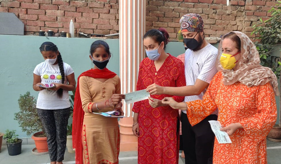 - Today, at the office of the trust in Patiala, 75 girls arrived to receive their cheques for 3-month school fee along with eatables and cash incentive for festive season.